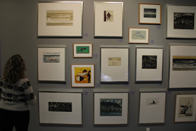 Á vegginum eru grafisk prent hjá Janusi Kamban, sum greitt er nestor á hesum øki, men inn í millum eru litrík dømi frá Súsonnu í Jákupsstovu, og innast á vegginum eru trý grafisk prent frá Jónu Rasmussen, sum í tematiskum autentisiteti eru tey mest spennandi, tí tey byggja á kærleiksbrøv frá manninum umborð til konuna heima. Spennandi, tá listafólkini ganga millum okkum, nú fernisering var. Tað vitnar í sjálvum sær um tann vitalitet, sum støðugt er í myndaevninum havið.
