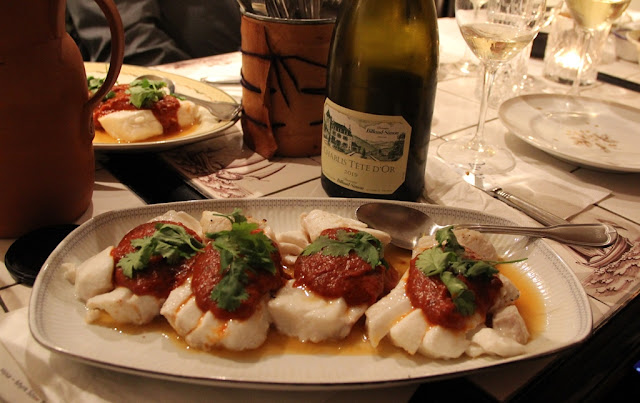 Nú kemur John við tí allarbesta Chablis, sum er tjúkt og kremut við nøtufyllu í smakkinum, tí nú er tað nýveidd hýsa av bankanum við sjáldsama góðum konsistensi og myrkari sós afturvið.